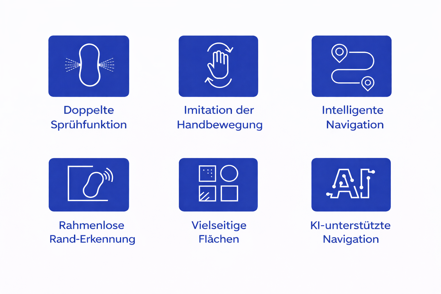 Der intelligente Roboter reinigt automatisch, sicher und präzise — für perfekt saubere Fenster ohne Aufwand.